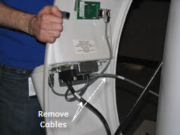 warning- Disconnect the three cables attached to the IRD (ground cable, fiber optic cable, and power cable).