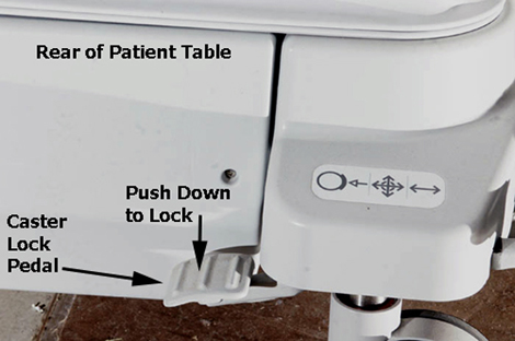 - Make sure the caster locks inhibit all patient table movement when the pedal is in the locked position.