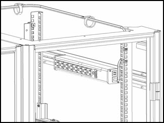 - Secure the power strip cable to the cabinet with the use of tie wraps at the top and along the side rails of the cabinet. Tie wrap the power strip cable to the cabinet separately; avoid joining with any existing cables.