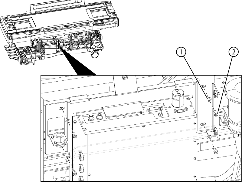 1 Washer 2 Screw - Cut cable ties securing cables to the PAC bracket.