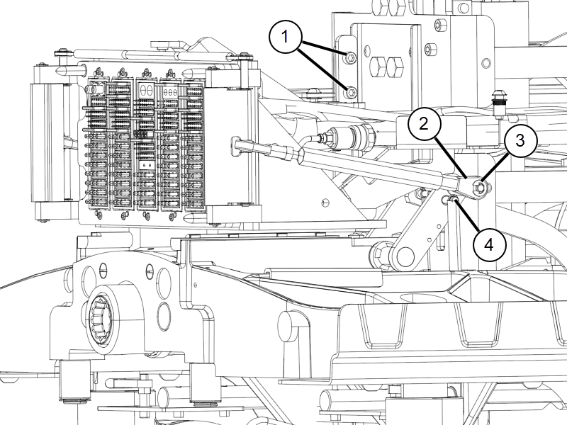 1 Bracket screws 2 Rod link 3 E-clip 4 Spring - Slide the rocker shafts up to remove.