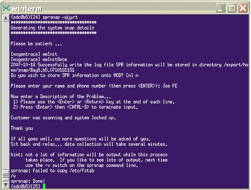 - Open a C Shell terminal and type sprsnapor sprsnap --skiprt at the command line.