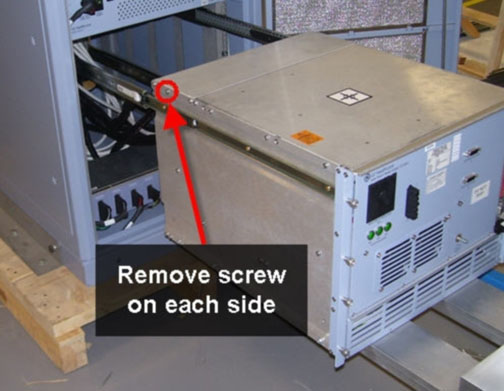 - Slide the SRPS completely out of the PEN cabinet by removing 8 thumb screws.