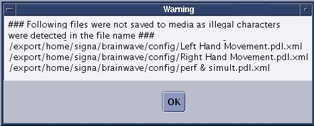 note: Even if the warning displays, the SaveInfo was saved; the files listed in the warning log were not.