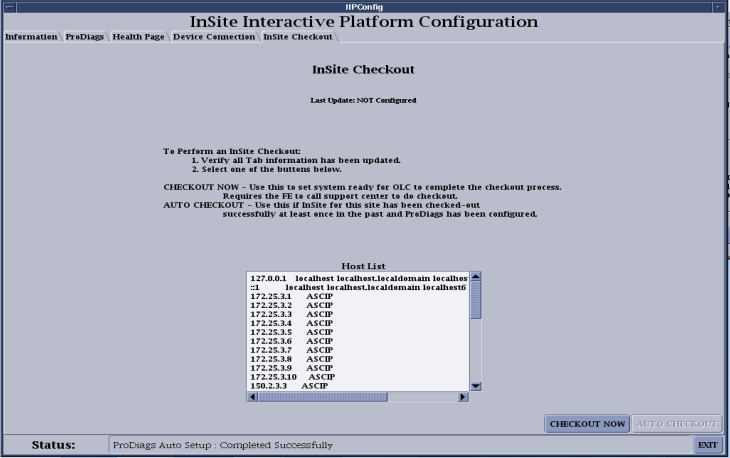 - The CHECKOUT NOW option configures PPP to allow a connection from the Online Center. You must call the local Online Center connectivity team to complete checkout.