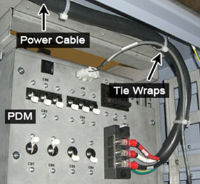 - Remove the tie wraps that hold the power cable. The cable goes under the XRFD and along the side of the cabinet to the top Figure 3.