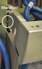 - Before disconnecting any coolant lines on the front of the XRFD unit, shut down the PPMP at the HEC by pressing ▲ and F3 simultaneously. Then, switch the PPMP circuit breaker to OFF.