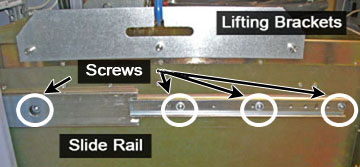 - Attach the lifting brackets to both sides of the XRFD. The attachment screws are captive and remain with the lifting brackets.