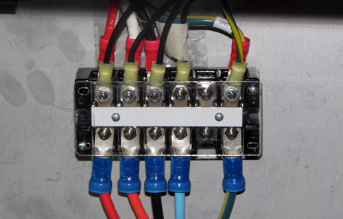 note: Before continuing, be prepared to absorb any leakage from the coolant lines with a towel in hand as the line is disconnected. - Disconnect the power cable at the terminal, the cables on the