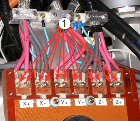 Item Description 1 Five stainless steel screws - Loosen the retainer blocks to allow slack in order to remove the gradient power terminals from the busbar.