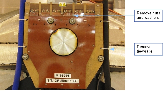 securing the busbar assembly to the magnet. Remove the tie-wraps securing