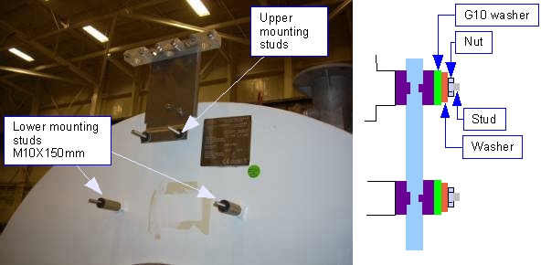 - Install two M10 x 150 mounting studs 5324035-6 into the two lower mounting points using Loctite 242.