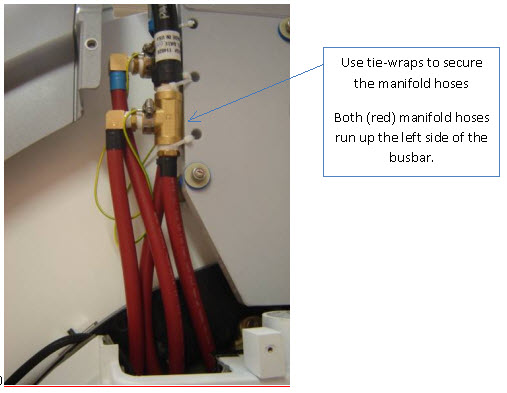 - Secure the manifold hoses to the busbar using nylon tie-wraps.