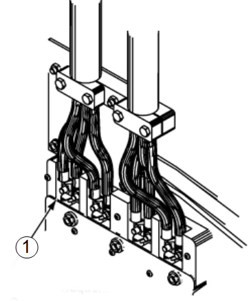 Use the torque wrench to tighten the nuts on the top of the busbar to 25 ft-lbs or 33.9 Nm. See Step 5.