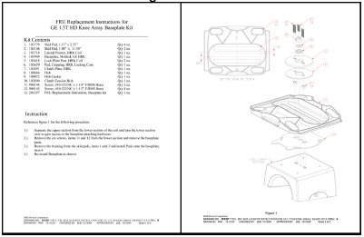 Open the 1.5T HD Knee Array Baseplate FRU kit and find the FRU Replacement Instructions for GE 1.5T HD Knee Array Baseplate Kit, as illustrated in Figure 3.