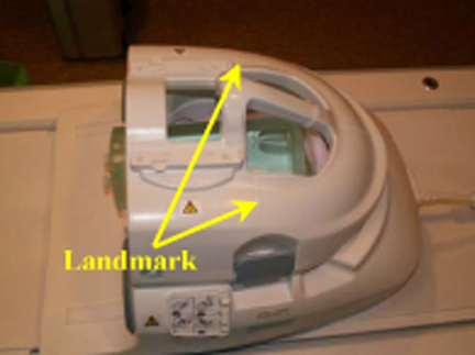Landmark on the markings over the chest section of the coil as indicated in Figure 14.