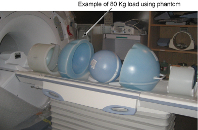 5. Place the 80Kg Load evenly on the Cradle. If using the phantom, refer to the following illustration.