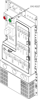 On the PDU, press the EMO Reset Button to return power to all effected cabinets. See Figure 3 for System Cabinet.