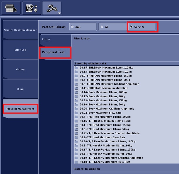 3. Select a protocol base on the coil and patient weight from Service -> Peripheral Test.