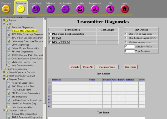 Diagnostics >> Hardware Location >> Magnet Room >> Receiver Diagnostics