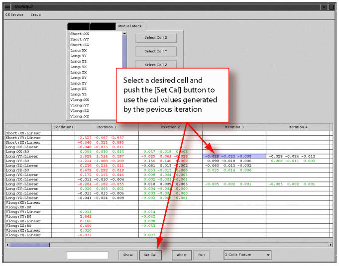 Using the method shown in Illustration 2 will load the cal values (to cal files and hardware) generated by the iteration selected (third iteration in this example).