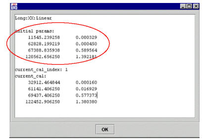 Figure 3, a pop-up from a previous section is duplicated to show the initial cal values (initial params) before the menu item is selected. Those initial cal values will be put into the cal file by this selection.