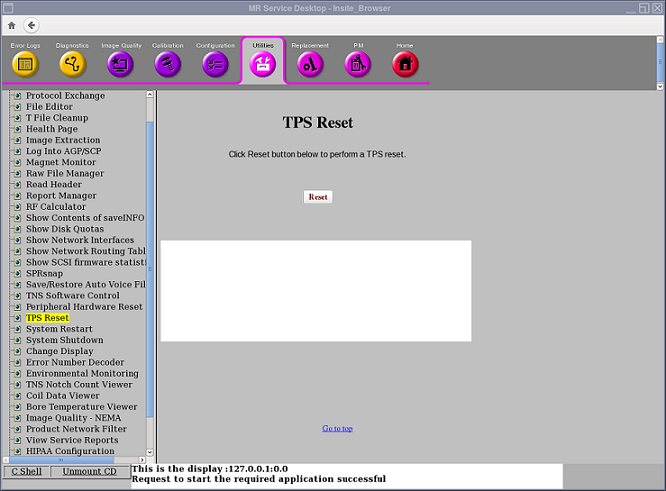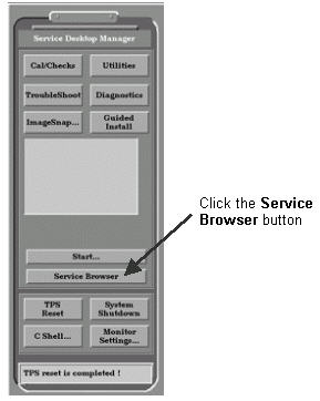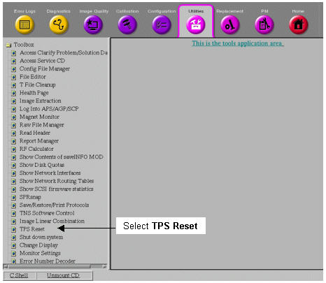 From the Service Desktop Manager, click on the Service Browser button, as shown in Figure 2. On the Common Service Desktop, select the Utilities tab. On the menu at the left, select TPS Reset (see Figure 3).