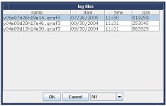 When selected, a list of log files displays. All log files may be displayed, depending on the scans completed. With the list displayed, click the desired log file and select OK. The data is loaded and the display appears as if the calibration session was just completed.