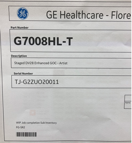 If the system is staged from the factory, the staged GOC will have a -T suffix to the GCAT and the staged GOC will come with a factory SaveInfo DVD.Figure 1. Example part number label on a staged GOC