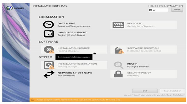 At times during the software load, the screen may freeze at either a black command prompt screen or at the installation summary screen due to a known Red Hat bug (bug ID 1432436). If this occurs, you must restart the software load from the beginning.