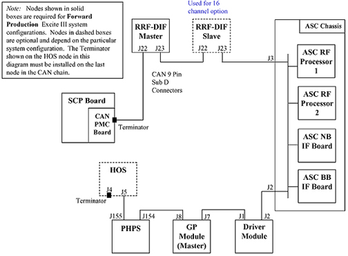 This test provides a means for check the functionality of the Multi-Drop Serial (MDS) Link. See Figure 14 below. The MDS Link is currently the primary means of communication between the System Cabinet and the other cabinets in the MR system. The MDS Link is only used on systems upgraded to EXCITE HD equipped with an SSM.