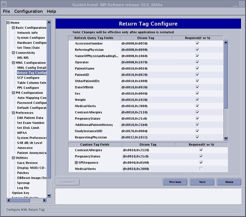 - Ensure that the Hospital Name, Suite ID, Host ID, and Local AE Title are correct for the MR system. The Local Port Number (Host Port) should be set to 4000 (same as the DICOM (Digital Imaging and Communications in Medicine) networking port number for MR systems). These are the parameters that the hospital RIS system uses to identify our system (see Figure 15).