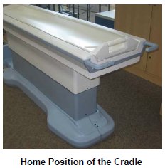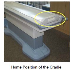 Check whether the cradle is getting unlocked from the table or not. Adjust Cradle release Block Adjustment if required. Refer to CRADLE EMERGENCY RELEASE ADJUSTMENT.