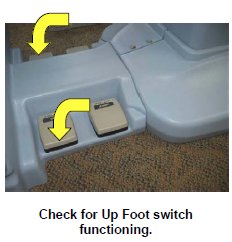 If Cradle is at home position, then check for both foot switch spring action by pressing the Foot switch. Refer to Figure 2. If foot switch is not working properly, replace the foot switch. Refer to FOOT SWITCH AND FOOT PEDAL CABLE.
