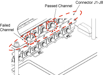 If the problem moved to the previously passing channel, replace the cable segment between the MIB and the Mega Switch. Return cables to their original positions.