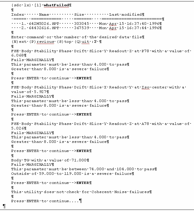 Press Enter to continue. For each failure it finds, it will print out each failure one at a time. Press Enter to move through each failure listed. See Figure 1 for a What Failed example.