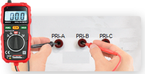 On the PDU front panel, check the voltage between PRI-A, PRI-B, PRI-C to make sure that the voltage is under 1VAC.