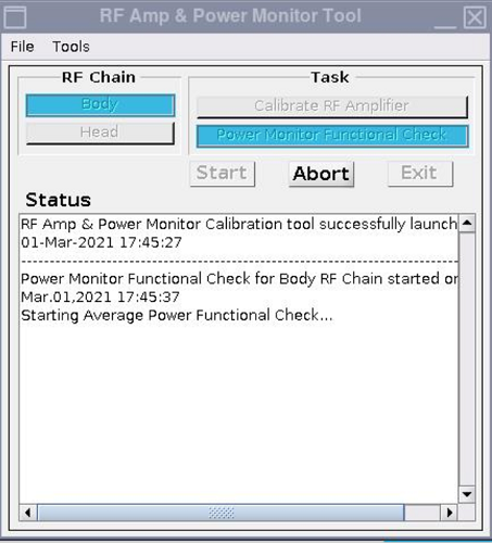 The preferred method for the RF Amplifier calibration is to use the Power Measurement kit that is mentioned in this procedure. If this kit is not available, RF output can be calibrated using an Alternative Equipment Setup and Dummy load and Cables Calibration. | - | - |