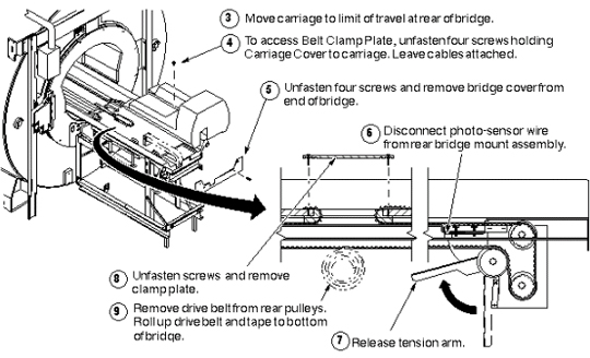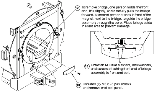 See the twelve steps in the following three illustrations, or, for greater detail, perform the procedure Bridge Replacement.