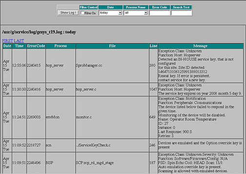 Accessing GE system error log