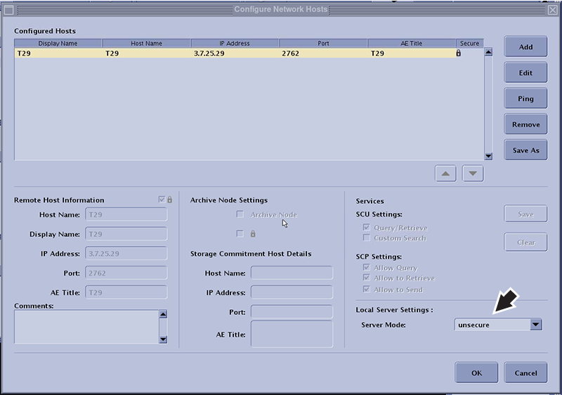 Configuring the MR system to receive/retrieve images in secure mode using local server settings