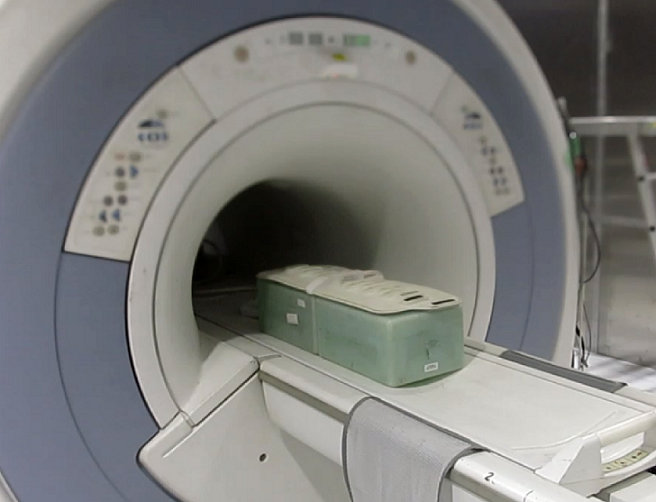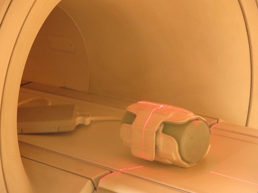 - Set the phantom and 1.5T 16Ch Large Flex coil on the cradle