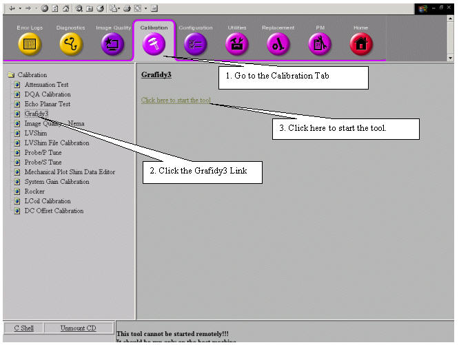IMPORTANT! Perform an L-Coil Calibration before starting the Grafidy 3 Procedure: From the Calibration menu, select L-Coil Calibration. Click the selection to start the tool. The calibration runs automatically.