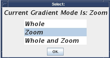 If Whole or Zoom is selected, the gradient mode is set to the selected value and the tool looks like it does with BRM or CRM systems. Calibration in Auto mode is identical to that described above. To calibrate the other mode, exit and restart the tool, and then select the other mode in the initial popup window.