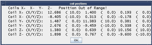 he location of each sample in the magnet bore is measured. A message is presented if any sample is more than 1.5 cm from its ideal location. When presented, you have three options:
