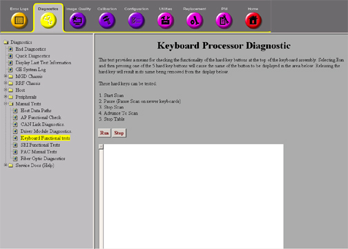 This test provides a means of checking the functionally of the hard key buttons at the top of the keyboard assembly .
