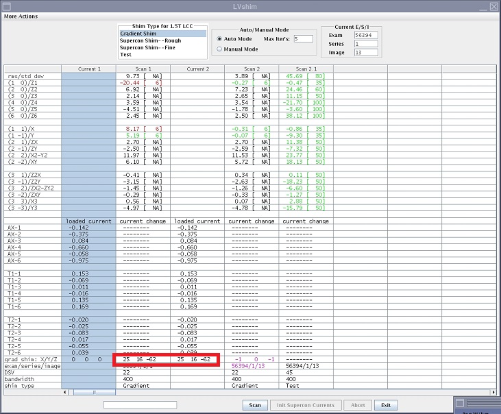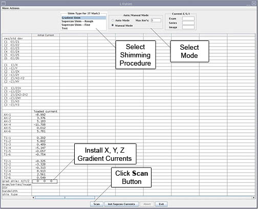 Rough LVShim is normally needed at new sites that have never been shimmed before. If the site has previously been shimmed with LVShim, skip Rough LVShim and begin with Fine LVShim. For a new magnet installation, the magnet ATR shim currents are used for Rough LVShim.
