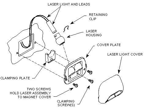 Procedures for replacing alignment lights, and alignment of the laser lights. There is one (1) laser light in the top middle assembly.