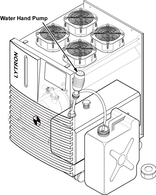 | Plastic draining tank. (Stored under water manifold at System Cabinet left side.) | - | - |