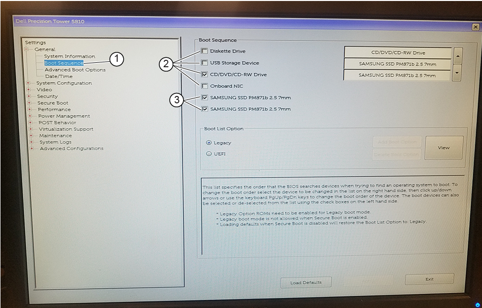 Setting the boot sequence - Dell T5810/T5820 (MR27 or earlier)